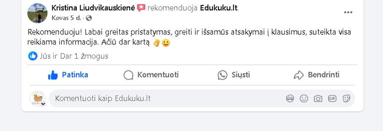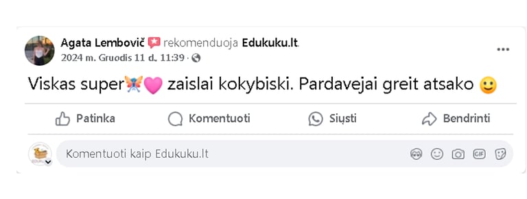 Edukuku.lt komanda visuomet pasirengusi padėti klientams, atsakydama į visus klausimus ir suteikdama reikiamą informaciją. Tai sukuria patikimą ir jaukią aplinką, kurioje kiekvienas pirkėjas gali jaustis gerai.